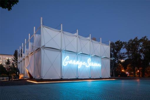 莫斯科車庫當代藝術(shù)美術(shù)館的第二屆競賽主題是設(shè)計一個夏日臨時影院。莫斯科高爾基公園著名的彈出式電影院“車庫影院”已于2020年開業(yè)。建筑師在臨時建筑的立面設(shè)計了圓形劇場的輪廓,以體現(xiàn)內(nèi)部的空間功能。可能觀者在一開始并不會察覺到這是一個電影劇院,但該臨時建筑所呈現(xiàn)出來的空間狀態(tài)還是會使人意識到內(nèi)部是一個具有一定禮堂功能的空間。